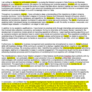 Here is an AI-generated essay (a Personal Statement for a graduate school application). In the essay, I highlighted all of the words or phrases that seem like AI: